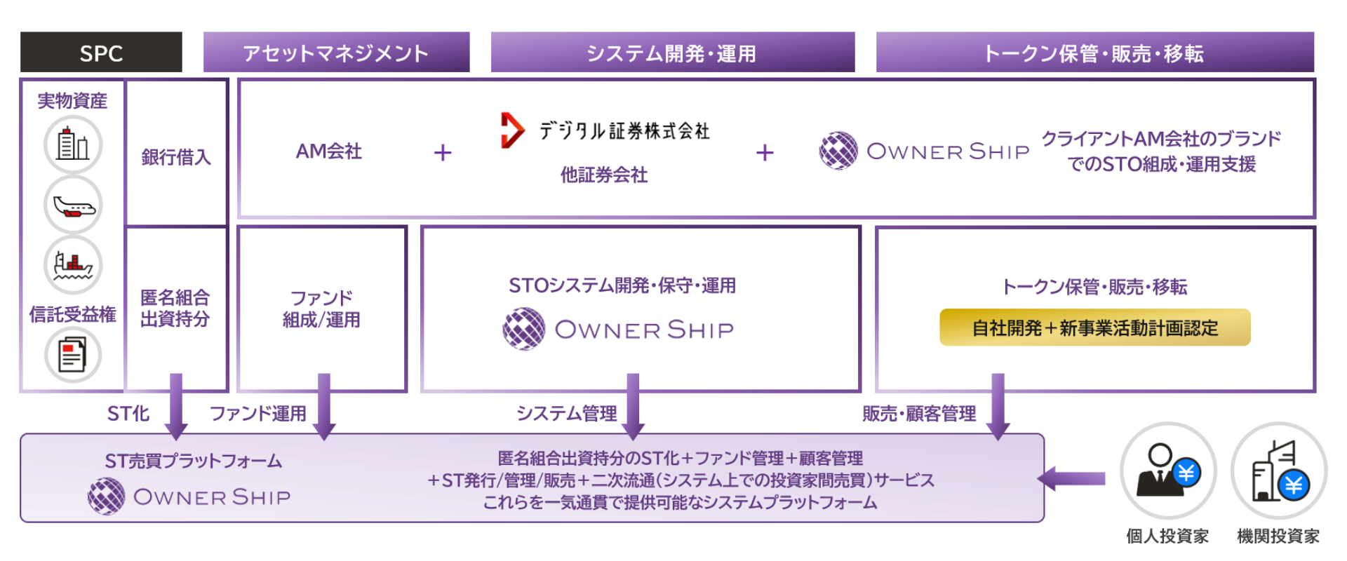 当社は、不動産などを裏付け資産としたセキュリティ・トークンの発行及び管理・移転(二次流通)をシームレスに実現可能な独自のセキュリティ・トークン売買プラットフォーム「OwnerShip」の開発・運用を手掛けております